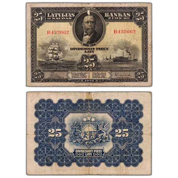Available for sale is a Latvia 1928 25 Lati Note P #18a - Small Tape Repair Country: Latvia Year: 1928 Denomination: 25 Lati Catalogue: Pick #18a Grade: Circulated Comments: Small...