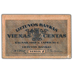 SOLD Lithuania 1922 1 One Centas Note P #7 - VF/EF
