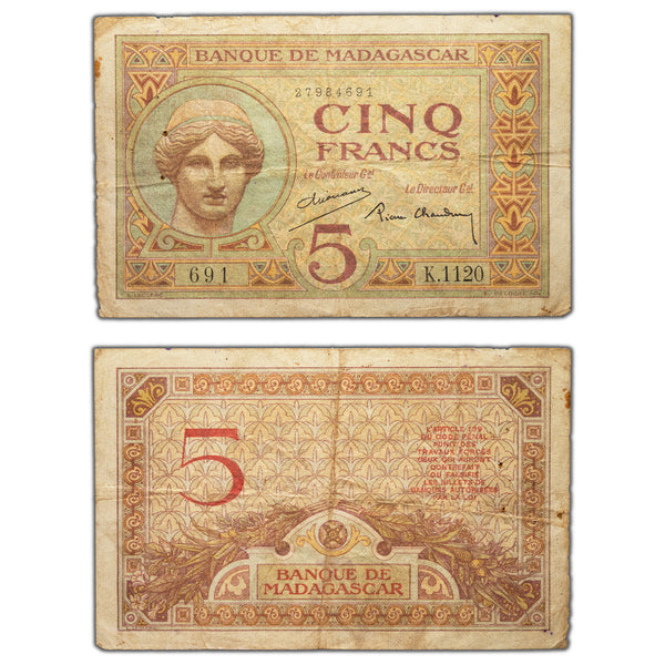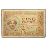 SOLD Madagascar ND (1937) 5 Five Francs Note
