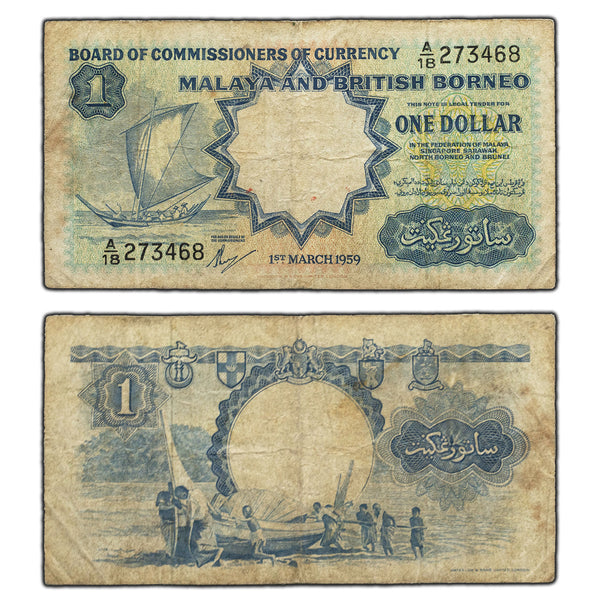 SOLD Malaya & British Borneo 1959 $1 One Dollar Note P #8a