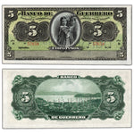 Mexico El Banco de Guerrero ND (Ca. 1914) 5 Five Pesos Note P #S298c - AU/UNC