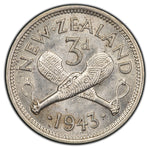 New Zealand 1943 3 Three Pence Silver Coin KM #7
