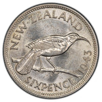 New Zealand 1943 6 Six Pence Silver Coin KM #8