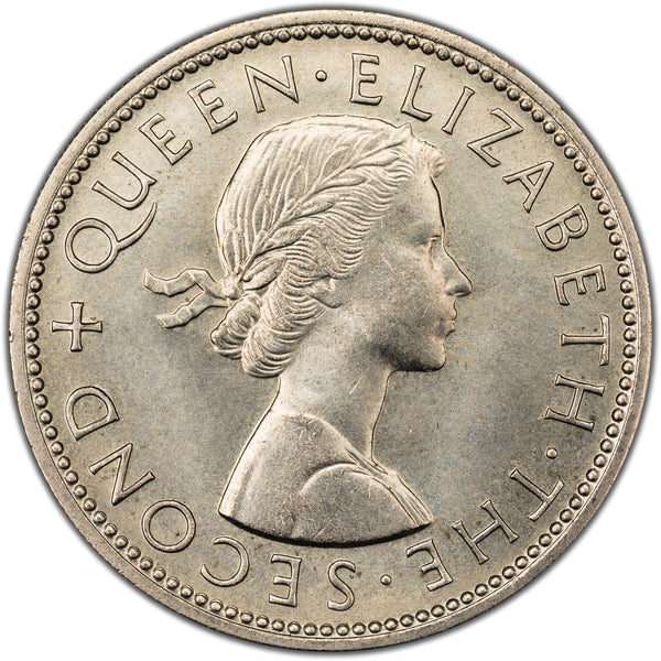 Available for sale is a New Zealand 1965 Florin Coin KM #28 - Brilliant Uncirculated SKU: SP1045
