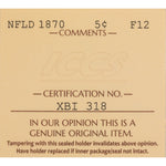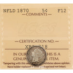 Newfoundland 1870 5 Cents Silver Coin - ICCS F-12
