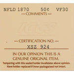 Available for sale is a Newfoundland 1870 50 Cents Half Dollar Silver Coin - ICCS VF-30