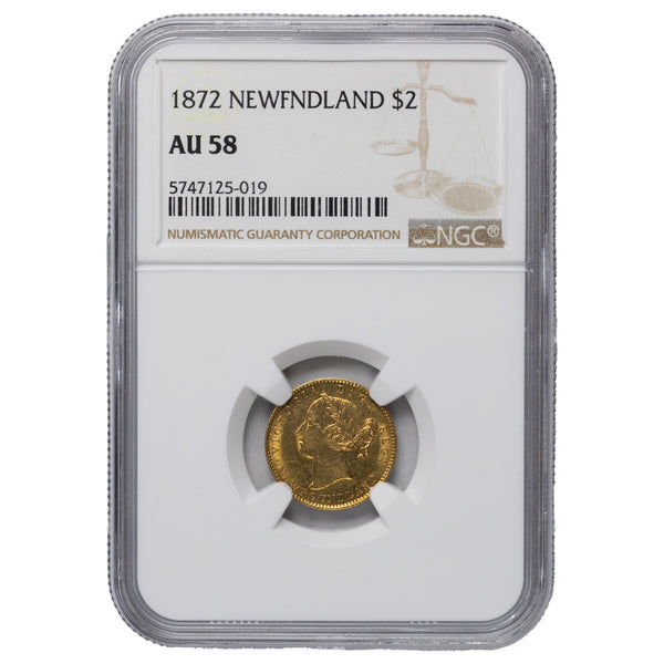 SOLD Newfoundland 1872 $2 Two Dollars Gold Coin - NGC AU-58
