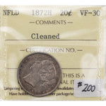 Newfoundland 1872-H 20 Cents Silver Coin - ICCS VF-30 (cleaned)