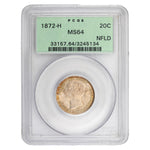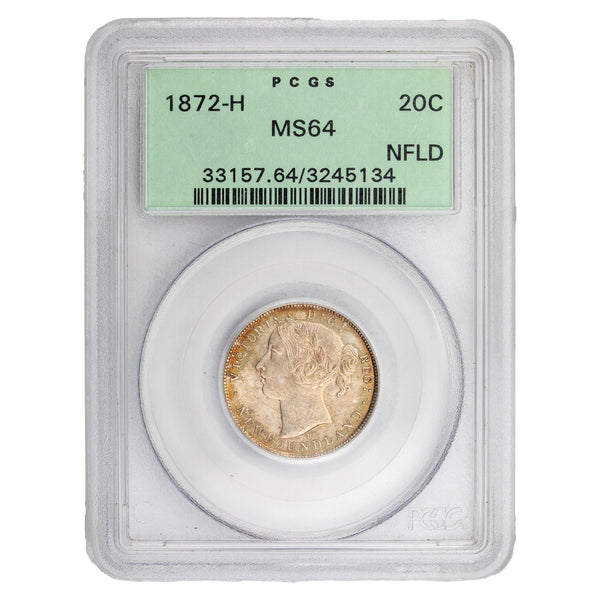 Newfoundland 1872-H 20 Cents Silver Coin - PCGS MS-64
