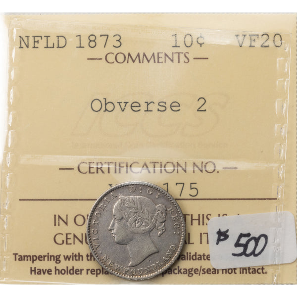 SOLD Newfoundland 1873 10 Cents Dime Silver Coin - ICCS VF-20