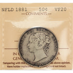 Newfoundland 1881 50 Cents Half Dollar Silver Coin - ICCS VF-20