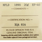 Available for sale is a Newfoundland 1890 20 Cents Silver Coin - ICCS EF-40 SKU: XQA 816