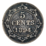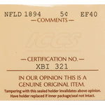 Newfoundland 1894 5 Cents Silver Coin - ICCS EF-40