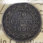 Newfoundland 1899 Large 9's 20 Cents Silver Coin - ICCS VF-30