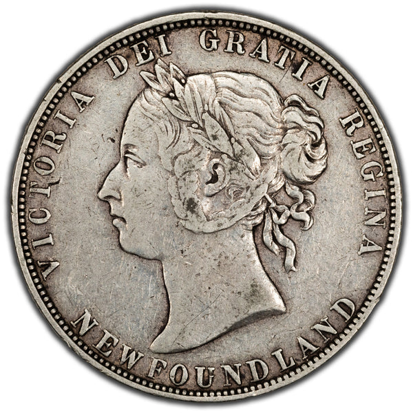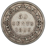 Available for sale is a Newfoundland 1899 Wide 9's 50 Cents Half Dollar Silver Coin - VF+