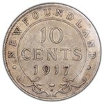 Newfoundland 1917-C 10 Cents Dime Silver Coin - ICCS EF-40