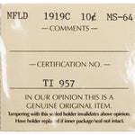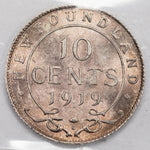 Newfoundland 1919-c 10 Cents Silver Coin - ICCS MS-64