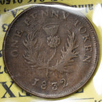 Available for sale is a Canada Nova Scotia 1823 One Penny Token CH #NS-4A1 - ICCS EF-45
