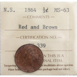 Nova Scotia 1864 1/2c Half Cent Coin - ICCS MS-63
