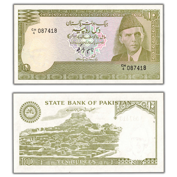 SOLD Pakistan ND (1984-2006) 10 Rupees Note P #39 (1) - Ch UNC (staple hole)