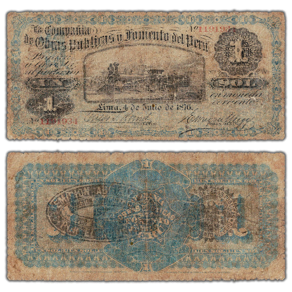 Peru Compania de Obras Publicas Y Fomento Del Peru 1876 1 Sol Note P #S444b - Filler (pinholes)