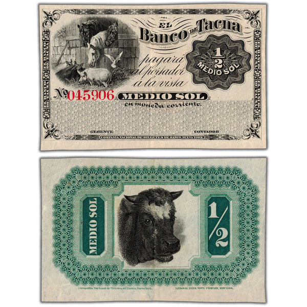SOLD Peru El Banco de Tacna 1870's 1/2 Sol Remainder Note P #S381r - EF/AU