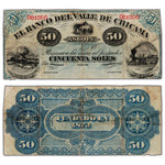 Available for sale is a Peru El Banco Del Valle De Chicama 1870's 50 Soles Remainder Note P #S425r - Trimmed/Major Repair