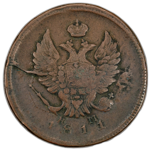Russia 1811 EM-HM Two Kopeks Coin - Reverse Die Break