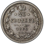 SOLD Russia 1860 Small Eagle of 1859 20 Kopeks Silver Coin Y#22.1