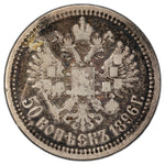 Available for sale is a Russia 1896 50 Kopeks Silver Coin Country: Russia Year: 1896 Mintage: 20,000,032 Denomination: 50 Kopeks Composition: Silver (.900) Weight: Copper Weight: 10g Diameter: 26.75mm SKU:...