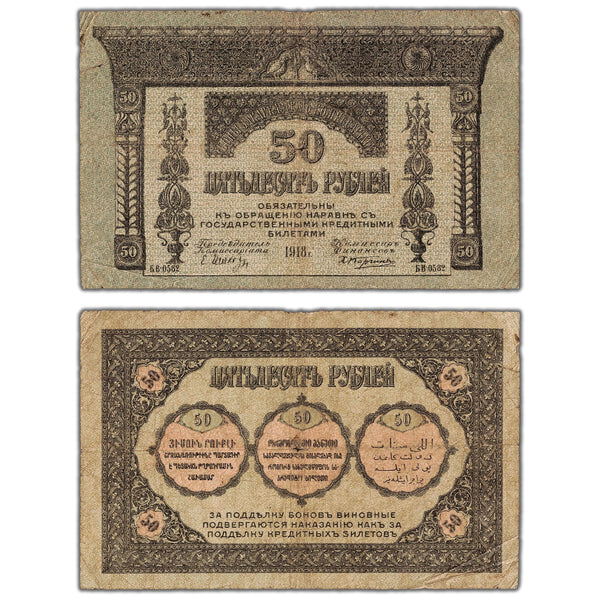 Available for sale is a Russia 1918 50 Fifty Roubles Note P #S605 - Circulated