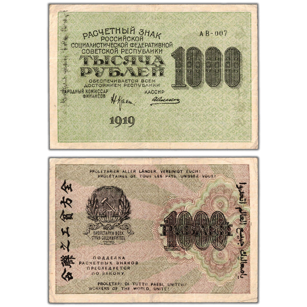 SOLD Russia 1919 1000 Roubles Note - Circulated