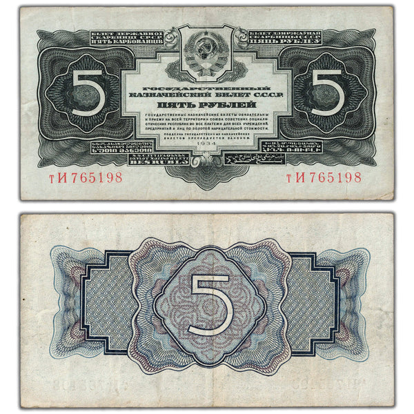 SOLD Russia 1934 5 Five Roubles Note P #212 - VF+