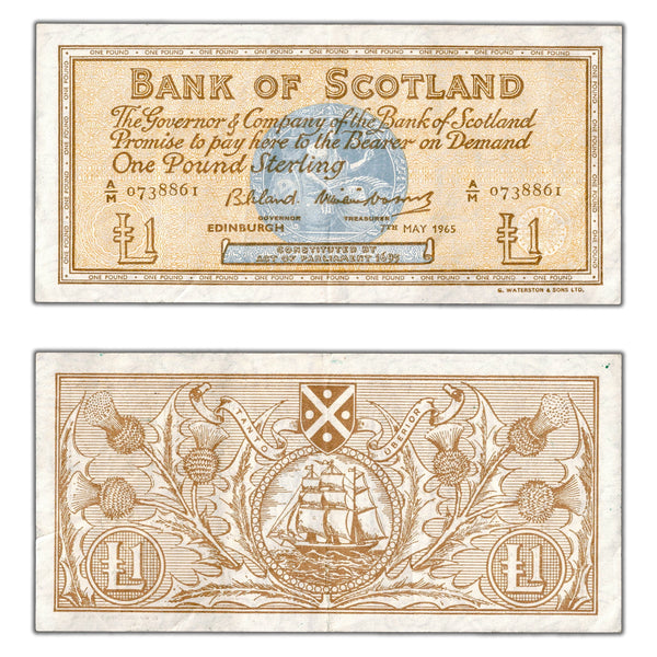 Available for sale is a Scotland 1965 1 One Pound Note P #102b - VF+ Country: Scotland Year: 1965 Denomination: One Pound Catalogue: Pick #102b Grade: Very Fine + Serial/SKU:...