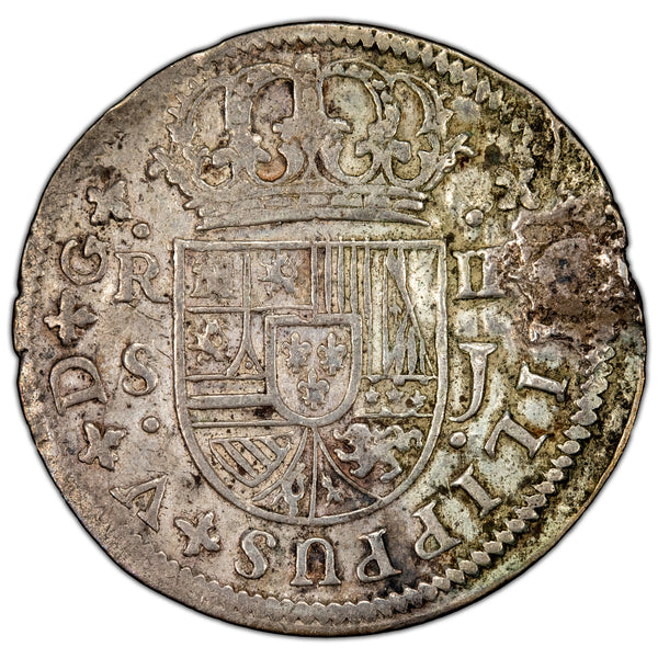 Spain 1723 Seville Two Reales Silver Coin - Damaged