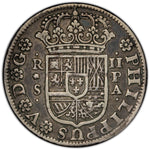 Available for sale is a Spain 1734 Seville 2 Reales Silver Coin KM #355 SKU: SP1380
