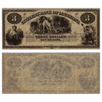 United States 1800's Citizen's Bank of Louisiana $3 Three Dollars Remainder Note