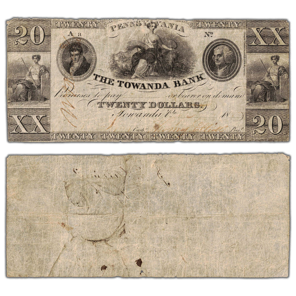 Available for sale is a United States 1800's The Towanda Bank $20 Obsolete Note - Pinholes SKU: US31