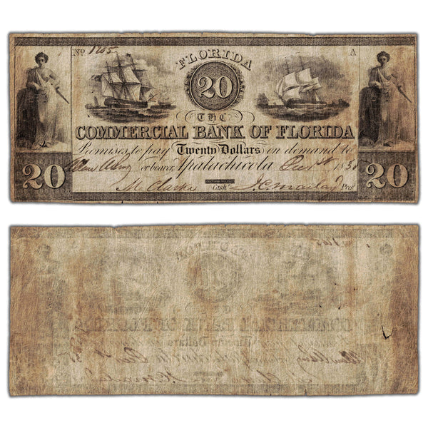 Available for sale is a United States 1835 $20 Commercial Bank of Florida Note - Circulated Country: United States Year: 1835 Denomination: 20 Dollars Variety: Commercial Bank of Florida Grade: Circulated ...