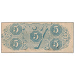 United States 1863 Confederate States of America $5 Five Dollars Note - AU+