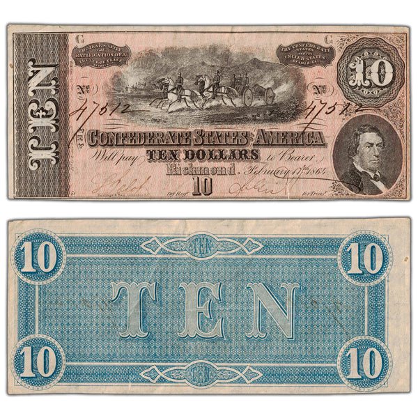 Available for sale is a United States 1864 $10 Confederate States of America Note - EF