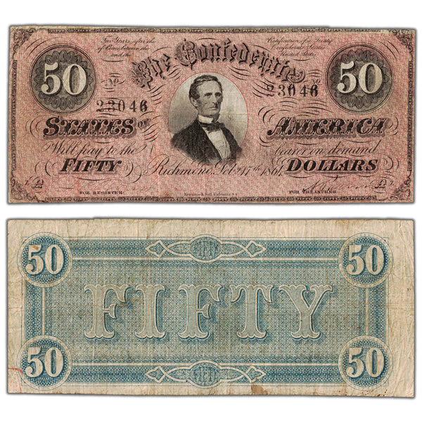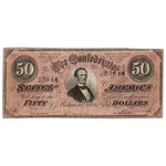 United States 1864 Confederate States $50 Fifty Dollars Note - Circulated