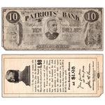 Available for sale is a United States 1898-1900 $10 Patriots' Bank Advertising Note Country: United States Year: 1898-1900 Denomination: 10 Dollars Variety: Advertising Note Grade: Circulated Comments: Missing Corner Serial/SKU:...