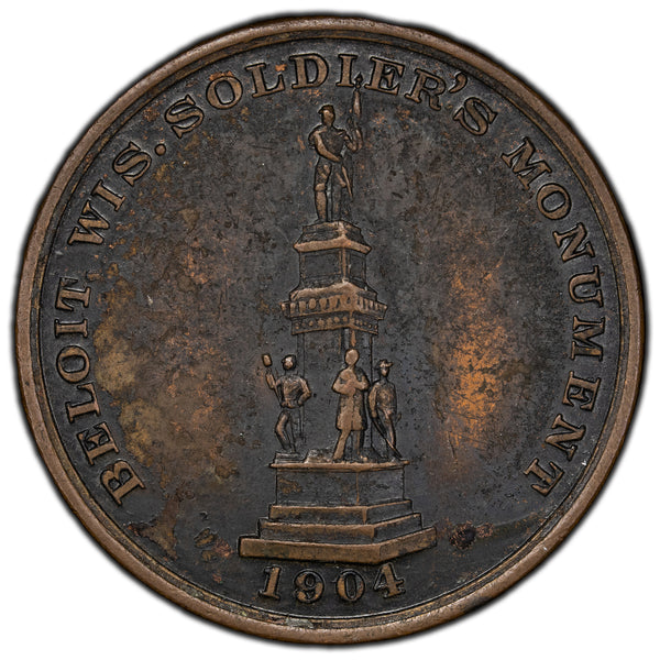 Available for sale is a United States 1904 Beloit, WI Soldier's Monument Medal 38mm