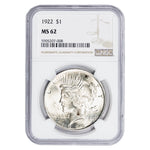 United States 1922 $1 Peace Dollar Silver Coin - NGC MS-62
