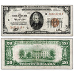 SOLD United States 1929 $20 Philadelphia, PA National Currency Note - VF/EF