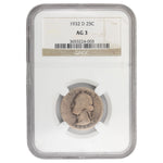 United States 1932-D 25 Cents Washington Quarter Silver Coin - NGC AG-3