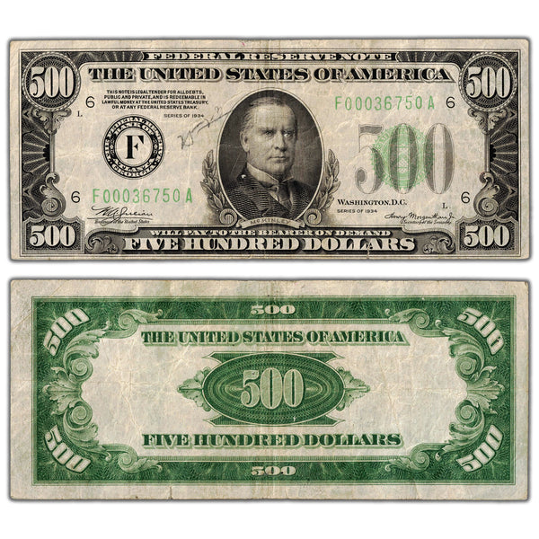 SOLD United States 1934 $500 Atlanta Federal Reserve Note - Writing/Minor Holes Country: United States - Atlanta, GA Year: 1934 Denomination: 500 Dollars Variety: Federal Reserve Note Grade: Circulated Comments:...