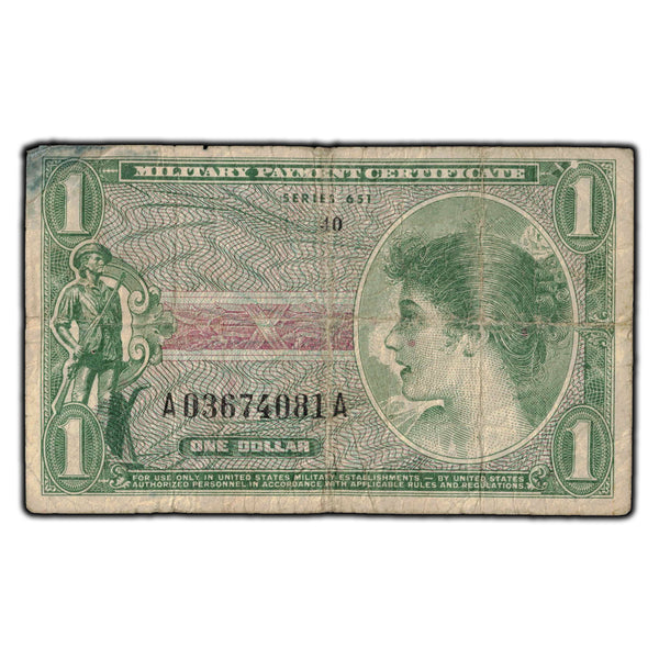 Available for sale is a SOLD United States Series 651 $1 Military Payment Certificate P #M72E