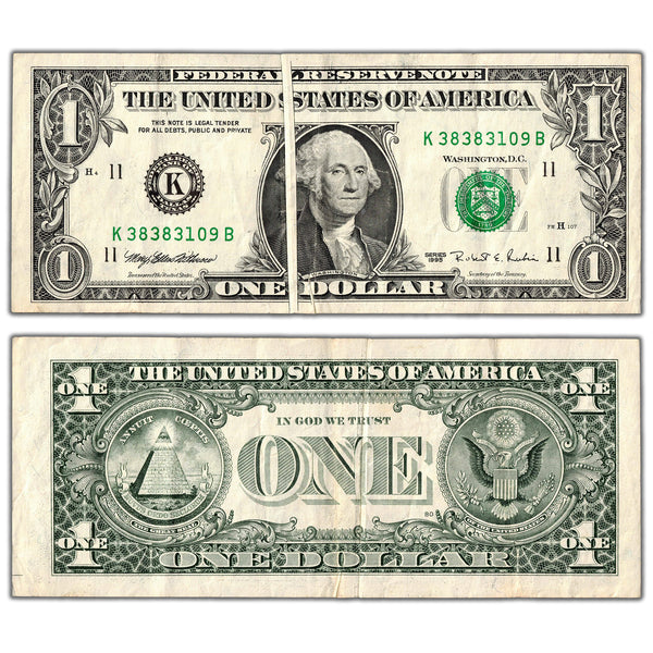 Available for sale is a United States 1995 $1 Dallas Federal Reserve Note - Gutter Fold Error